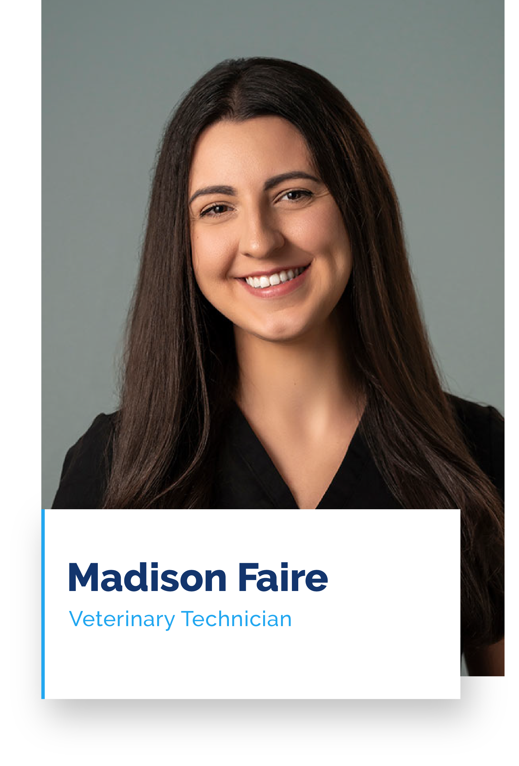 Madison is a veterinary technician with eight years of experience in the field. With a passion for medicine and caring for animals, Madison splits her time between her role at the animal hospital and pursuing her nursing degree for humans. Driven by compassion and a love for both animals and humans alike, Madison is committed to making a positive impact in the world of veterinary medicine and beyond. When she is not studying or tending to furry patients, she enjoys quality time with her loyal dachshund, Phoebe, and her playful cat, Bean.