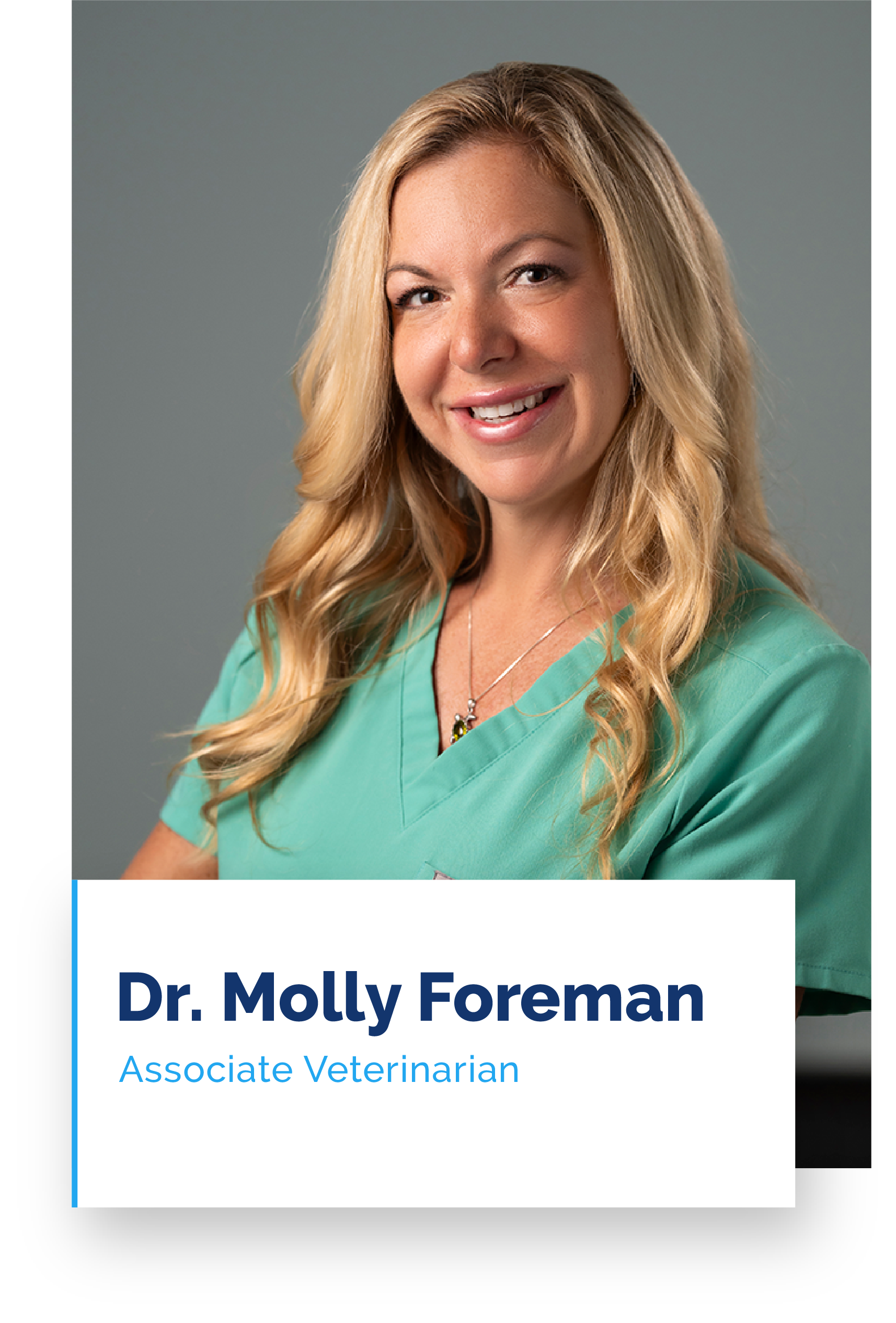 Dr. Molly Foreman was born on the Outer Banks of North Carolina and moved to the Florida Keys as a very young girl. She lived an island life, growing up on the ocean and having many critters throughout her childhood helped to develop her love of animals. She knew early on she wanted to work with animals to help make a positive impact on their lives. After growing up in the Keys, she went on to complete her undergraduate degree with a major in biological science and a minor in chemistry at Florida Atlantic University. Dr. Foreman then decided to pursue her career in veterinary medicine at Ross University School of Veterinary Medicine and completed her clinical year at Louisiana State University. If you have pocket pets/ exotic pets and reptiles in your family, Dr. Foreman is happy to take care of your furry, hairy or scaley friends. She has a special interest in soft tissue surgery, dermatology, and of course herpetology and exotic medicine. In her free time, Dr. Foreman enjoys spending time with her family, collecting shells on the beach, snorkeling, lobstering, boating and gardening. She is excited to be a part of the team at Cole Animal Clinic and meeting all the amazing clients and their pets.